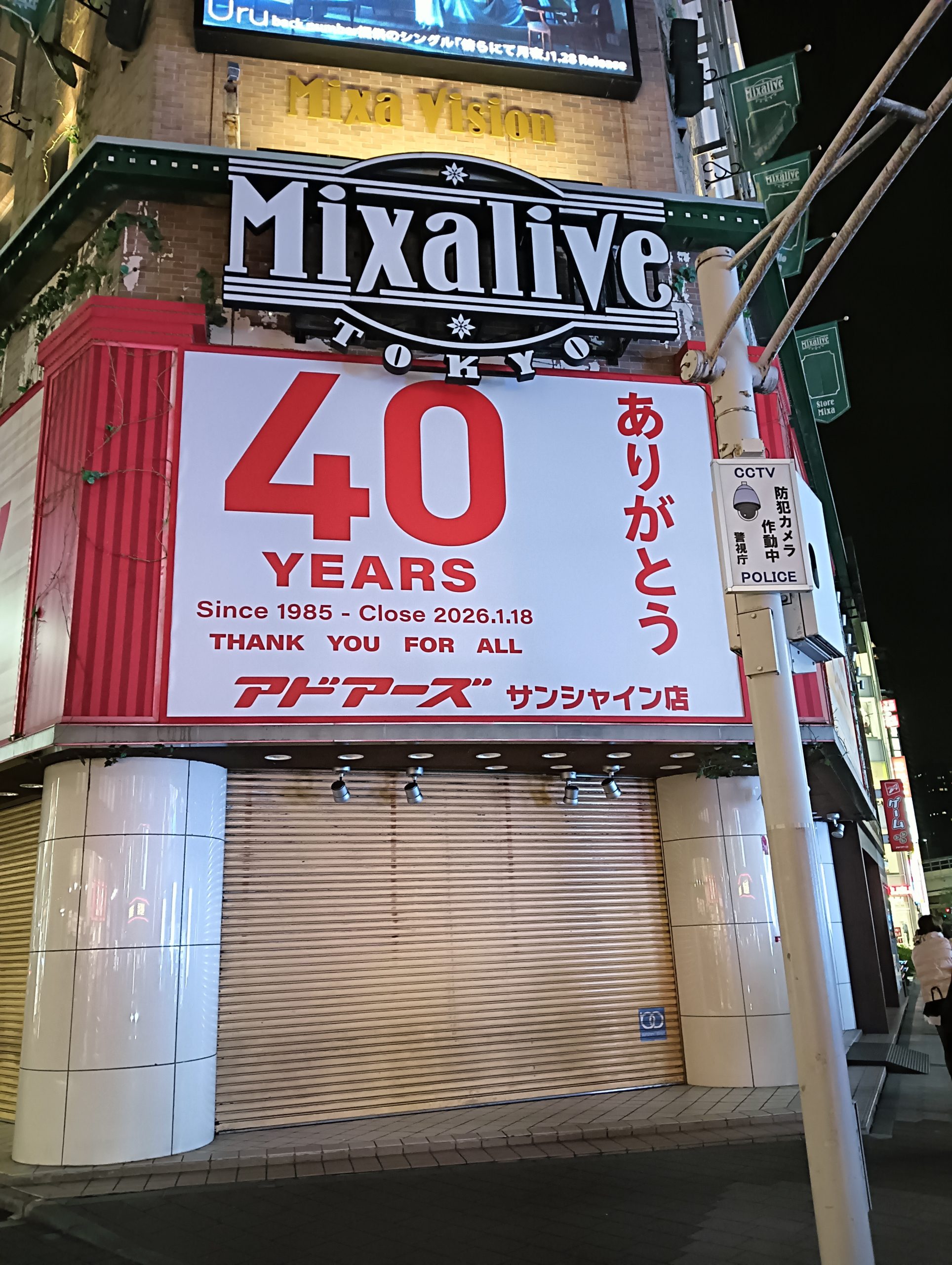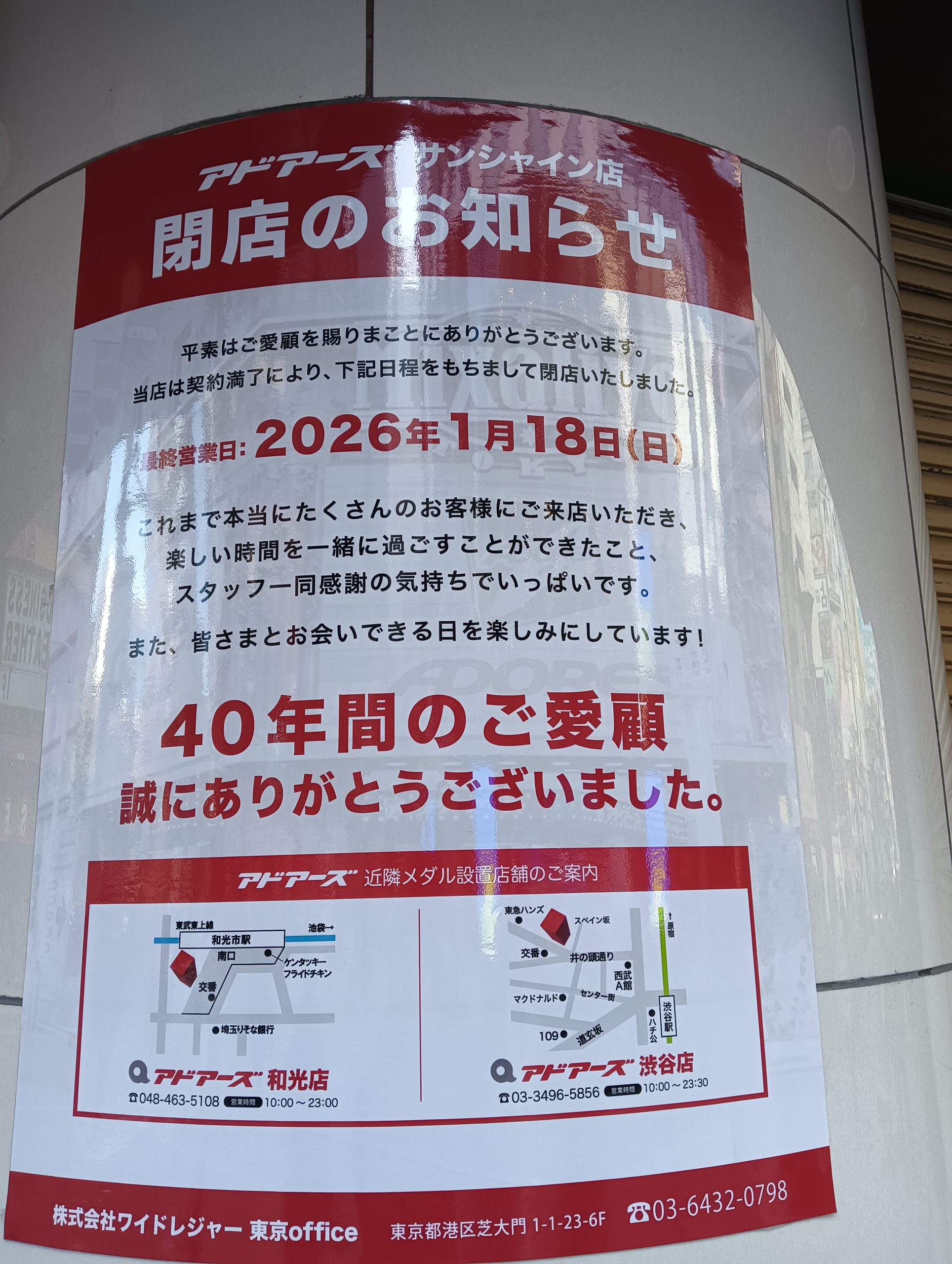 サンシャイン60通りのビルに店舗を構える大手「アドアーズ サンシャイン店」は、2026年1月18日付けで閉店となってしまいました。