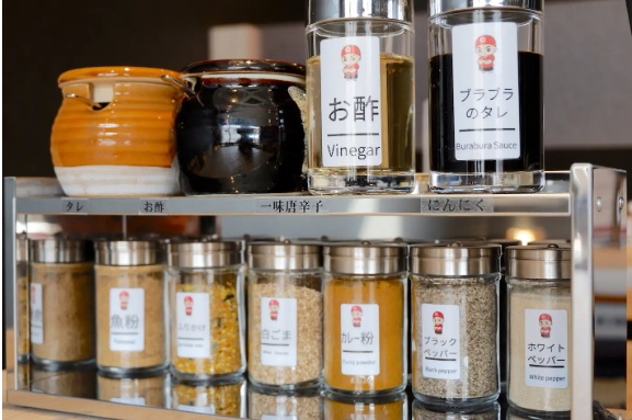 また卓上トッピングが豊富で、刻み玉ねぎ・にんにく・魚粉・特製一味唐辛子などで味変を楽しめます。