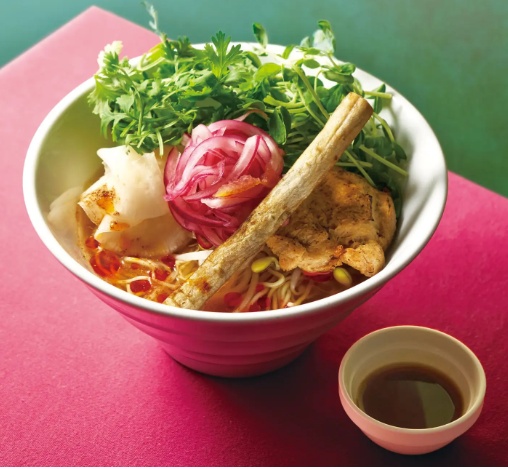 今回販売のVegan蘭州風「麻辣五香粉 醤油らーめん」は、八角、シナモン、花椒、クローブ、陳皮をブレンドしたミックススパイスの五香粉(ウーシャンフェン)を使用し、痺れる辛さとエキゾチックなスパイスの風味が魅力の一杯となっています。