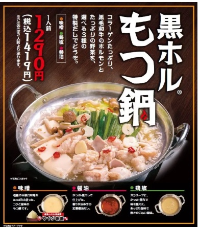情熱ホルモンでは「黒ホルもつ鍋」(税込1419円)が鍋が恋しくなる冬の人気もつ鍋となっています。