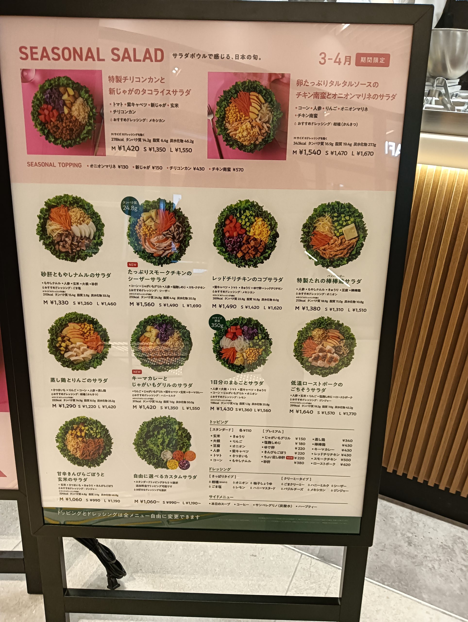 2か月ごとに「季節限定サラダ」を用いた新メニューを用意しているのも特徴です。
