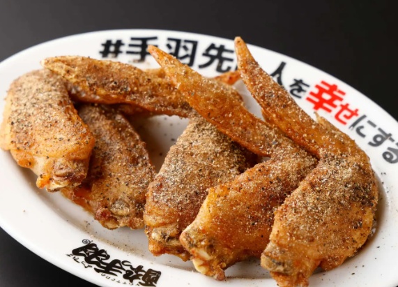 看板メニューの「伝説の手羽先(タレ)」は、国産の手羽先を高温で揚げ、秘伝のタレと8種のスパイスで仕上げた人気の一品となっています。